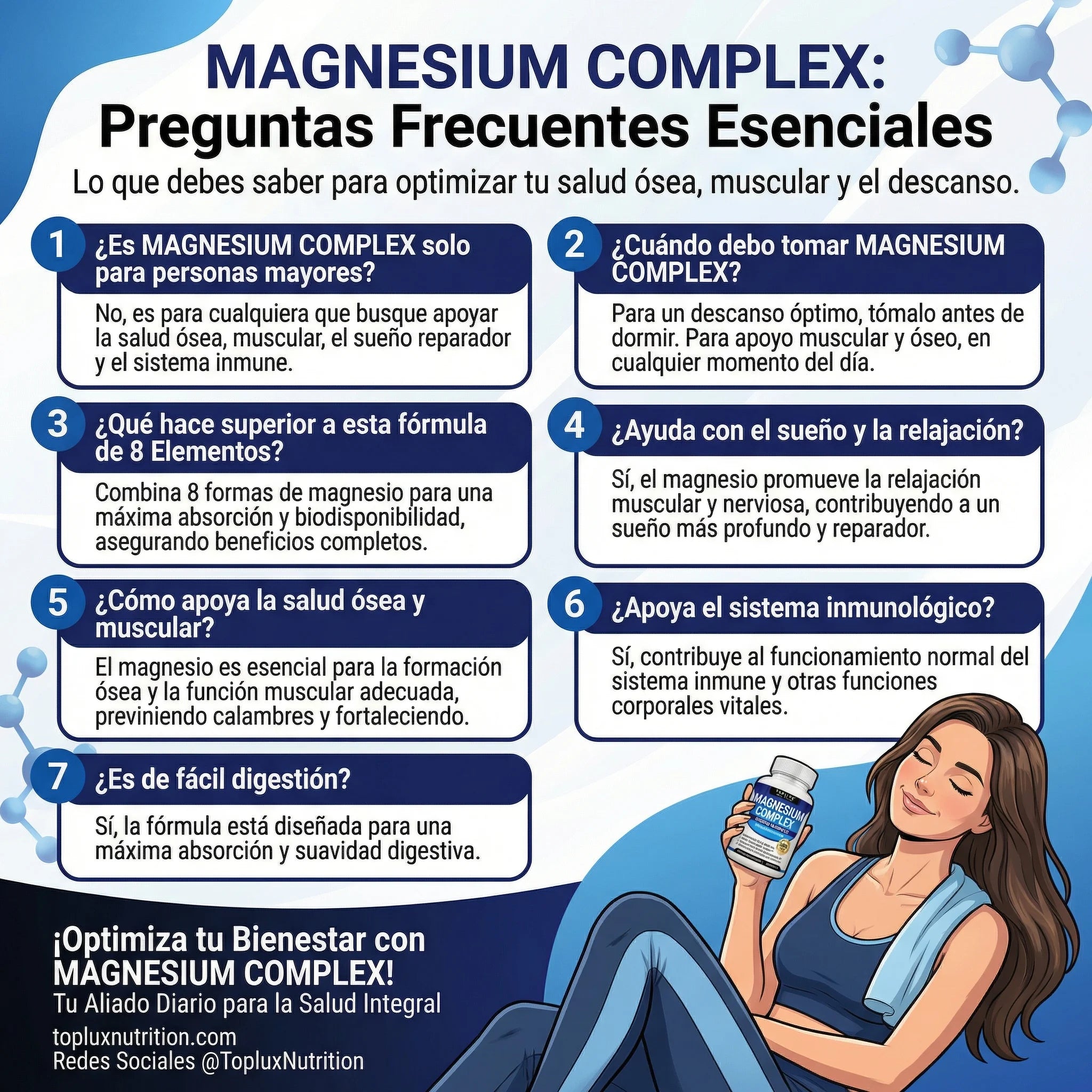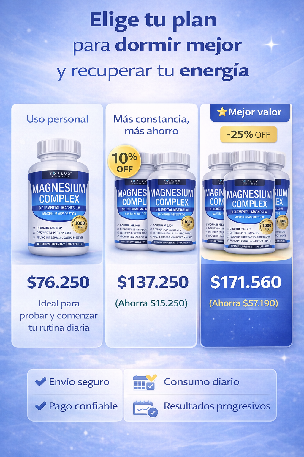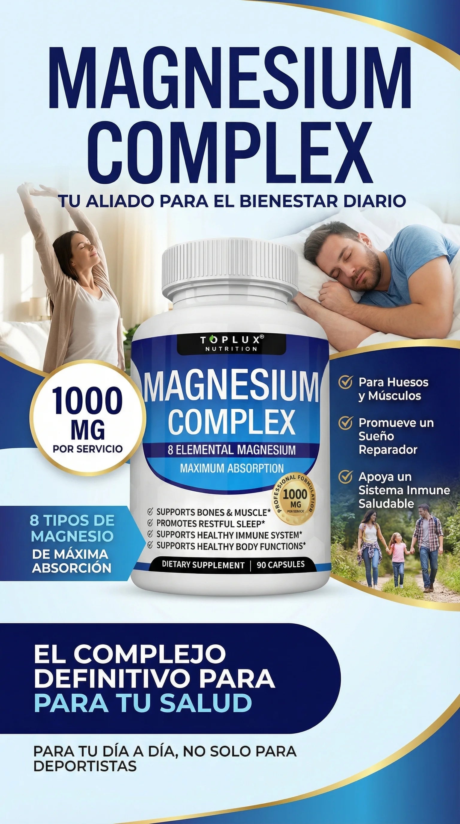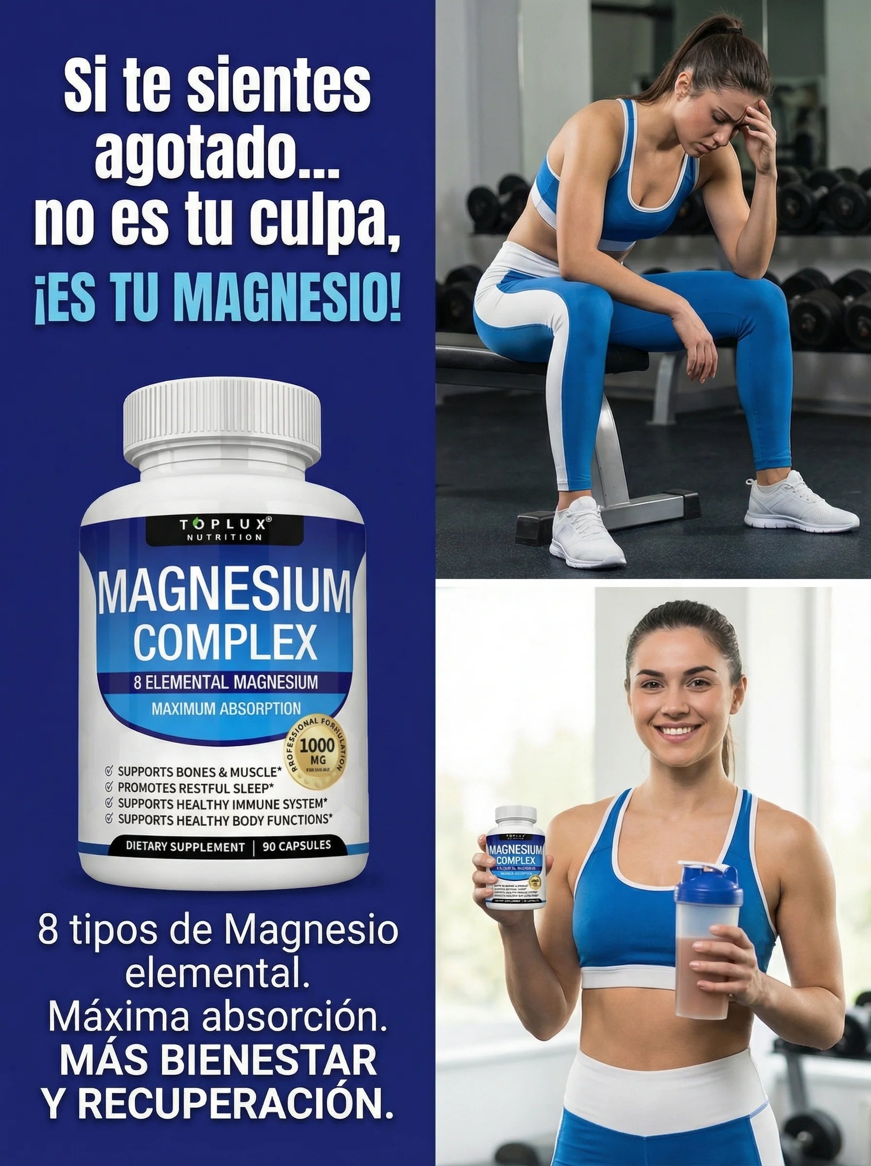💊 Magnesium Complex – ToPlux Nutrition ⚡Suplemento avanzado con 8 tipos de magnesio elemental para una máxima absorción 💪.🦴 Fortalece huesos y músculos😴 Mejora la calidad del sueño🛡️ Refuerza el sistema inmunológico⚙️ Favorece las funciones corporales saludables con 1000 mg por porción y 90 cápsulas, ideal para mantener tu cuerpo en equilibrio y con energía todos los días 🌿✨.